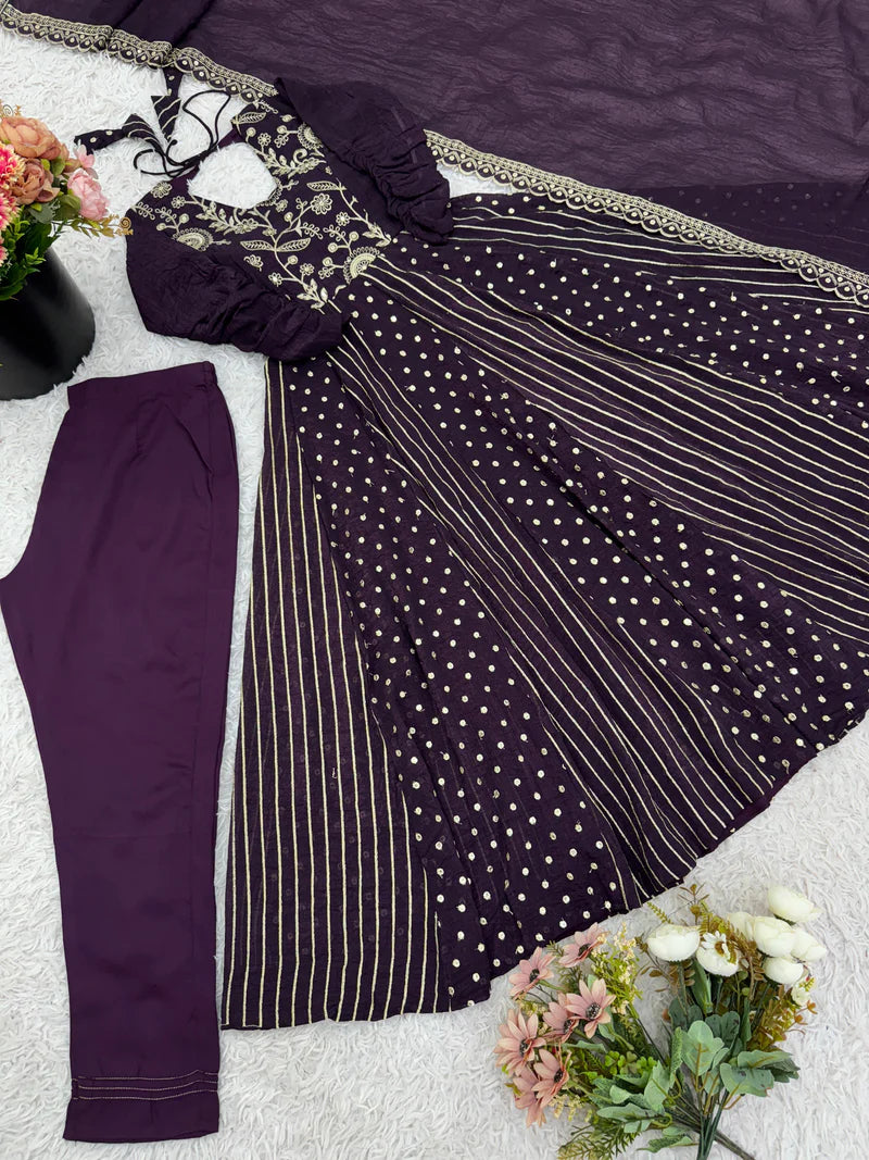 • *Fabric:* *Anarkali Gown With Crunchy Silk With Fully Flair*